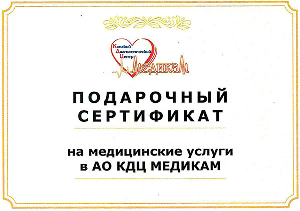 Подарочный сертификат АО «Камский диагностический центр «МЕДИКАМ»