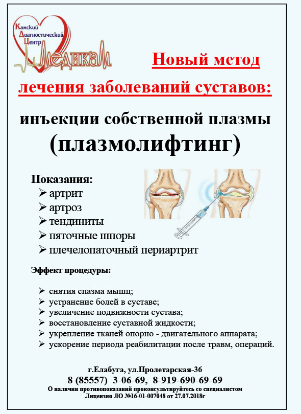 Лечение плазмой крови различных заболеваний и травм опорно-двигательного аппарата - это уникальный инновационный метод, отличающийся высокой эффективностью и безопасностью. Он широко применяется в ведущих клиниках Европы и показывает отличные результаты. PRP-терапия или плазмолифтинг с применением собственной плазмы крови, обогащенной тромбоцитами, относится к безоперационным способам лечения, практически не имеет противопоказаний и побочных эффектов/